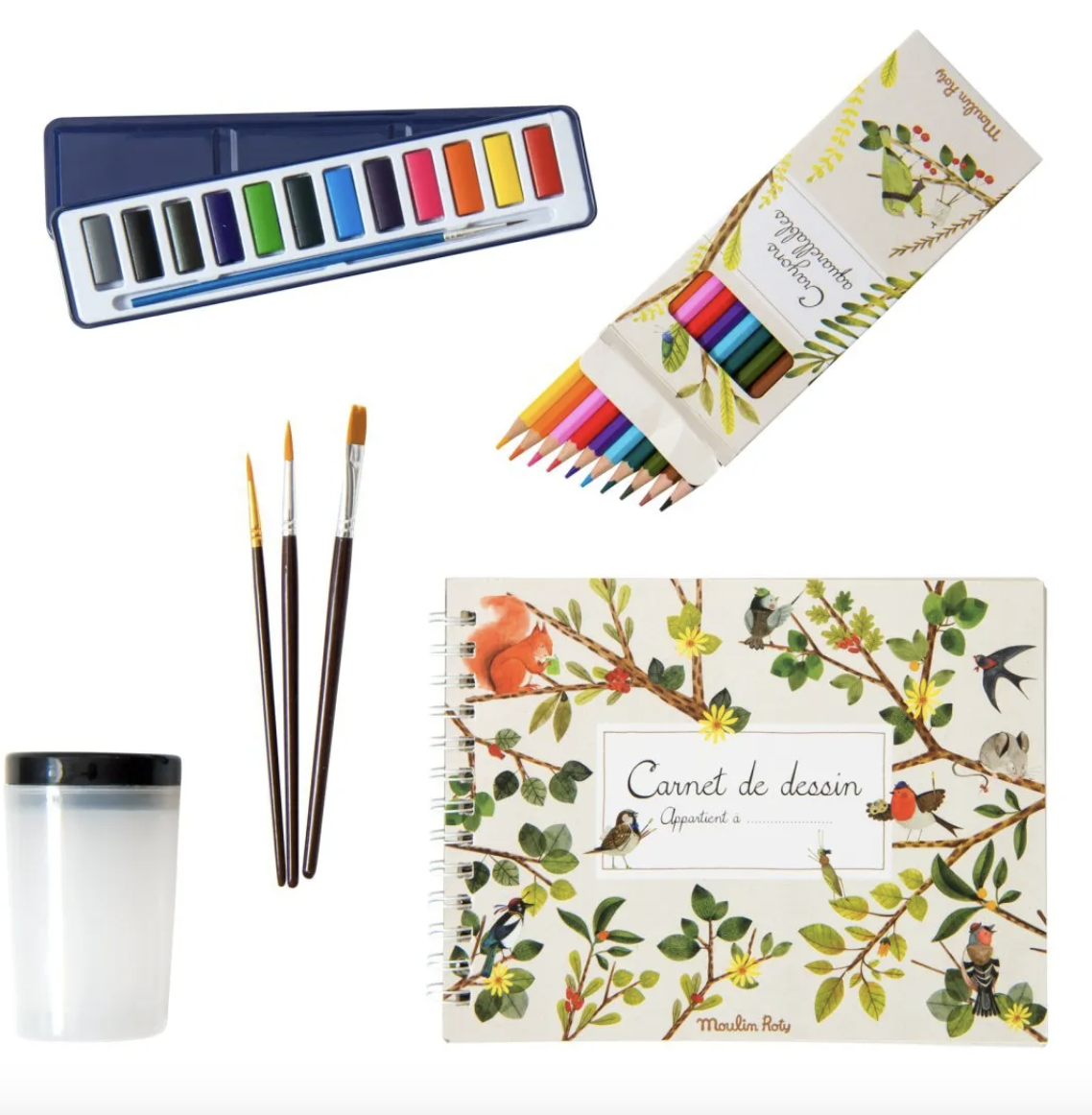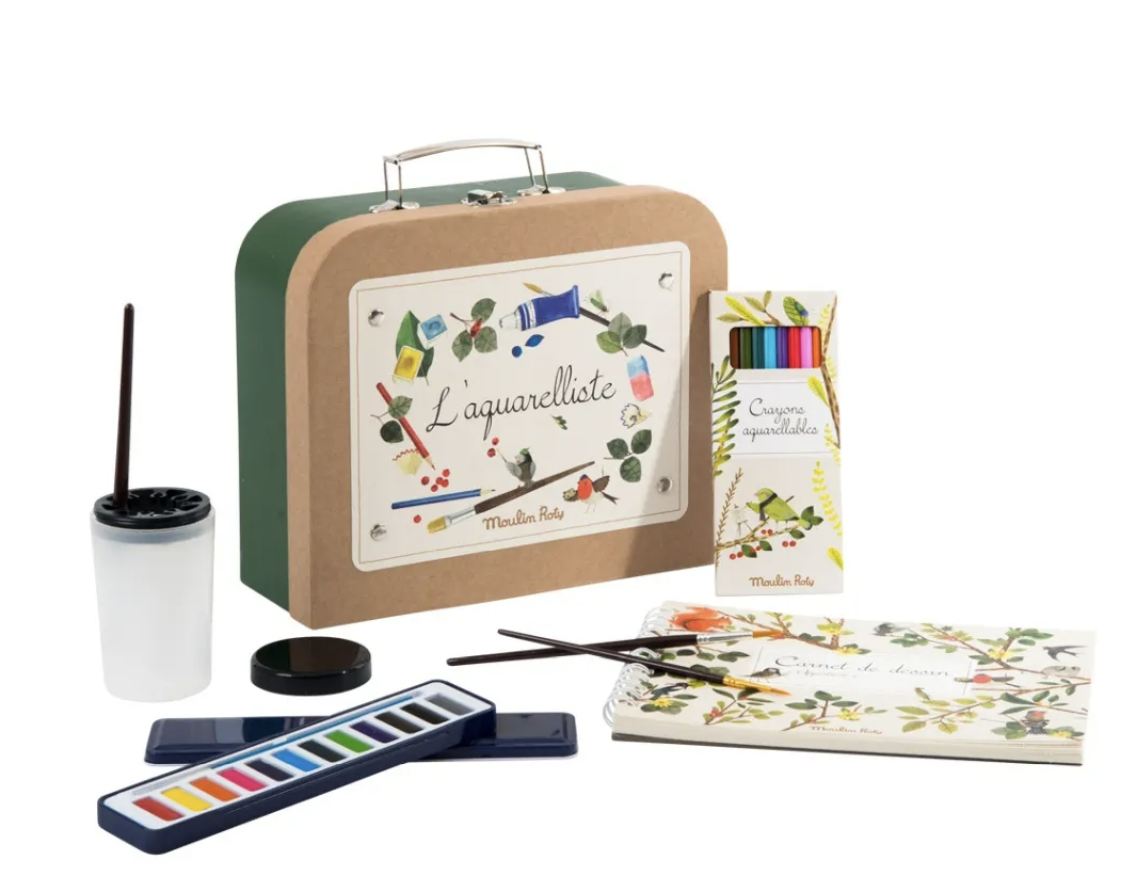 Aquarell Künstlerkoffer von Moulin Roty für Kinder aus der Serie Mémoire d'Enfant, Le jardin du moulin.