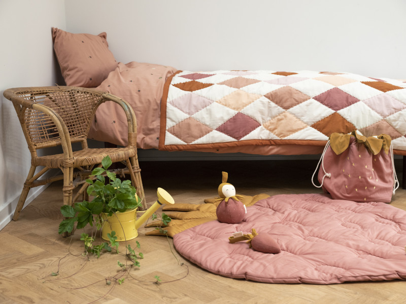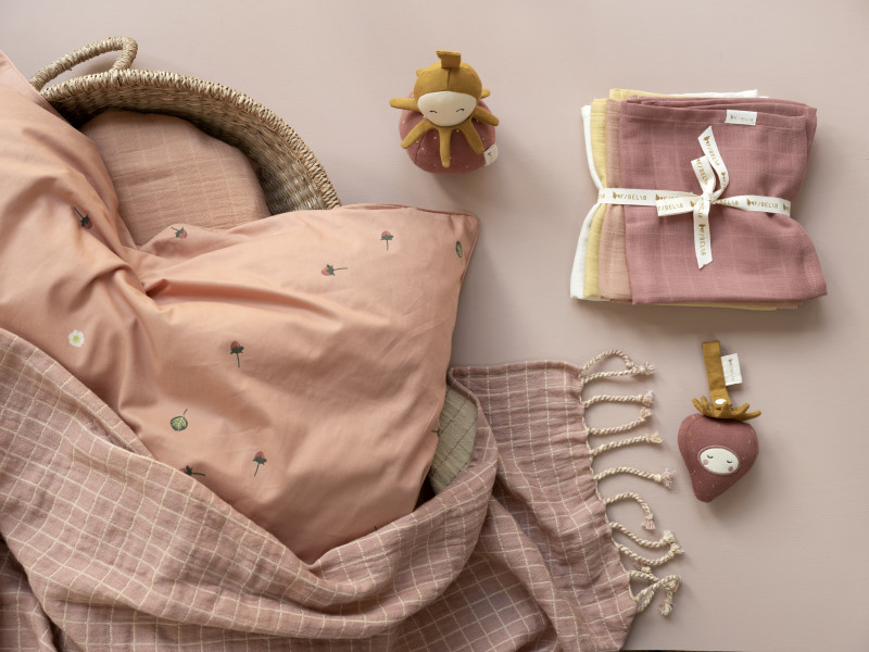 Bettwäsche wilde Erdbeere FABELAB in drei unterschiedlichen Größen (bitte wählen!) aus superweicher, ungebleichter Baumwolle in schönem Naturrosa mit hübschen Erbeermotiven.