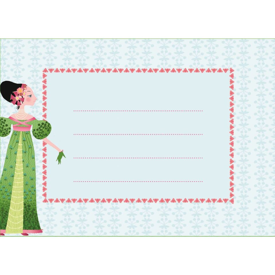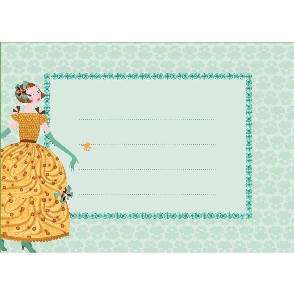 Djeco Einladungskarten Prinzessin sind acht toll gestaltete Karten mit unterschiedlichen Prinzessinnenmotiven. Auf der Rückseite findest du Platz für ein paar persönliche Zeilen.