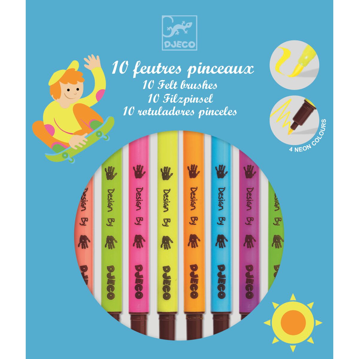 Djeco Filzstifte Jungs sind 10 knallig bunte Filzstifte in Künstlerqualität von Djeco. Wegen der Verpackung in Blau und mit einem Skateboard fahrenden Jungen, sagen viele es seien die "Jungsfilzstifte" von Djeco.