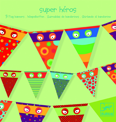 Superhelden 3 Wimpelketten Girlandenset aus Papier mit Superhelden-Motiv. Coole Geburtstagsdeko oder einfach so als Zimmerdekoration.