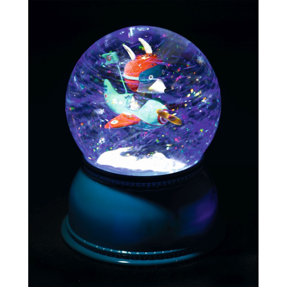 das Djeco Nachtlicht Flugzeug Airplane als Schneekugel mit farblich wechselndem Lichterspiel. Die Glitzerpartikelchen in der Kugel flirren bei Betrieb kontinuierlich und wie ein kleiner Schneesturm in der Kugel umher. Das lässt vor allem bei dem Flugzeugnachtlicht das Flugzeug und den Piloten im Inneren richtig lebendig wirken. Das Nachtlicht ist Batteriebetrieben und mit Timer versehen. Die Batterien sind nicht im Lieferumfang enthalten!