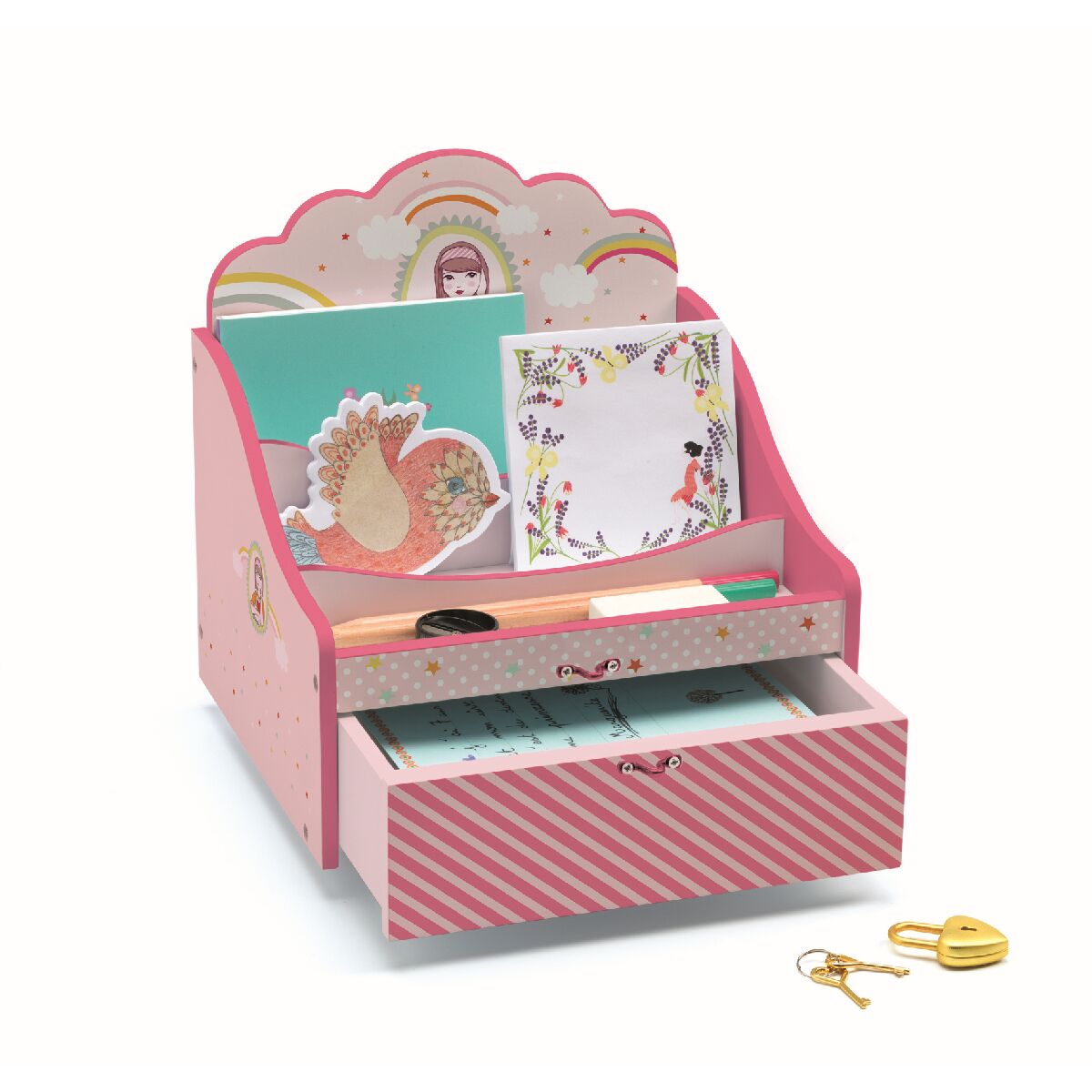Djeco Schränkchen Pink Secret garden ist ein wunderhübscher kleiner Geheimschrank. Aber in erster Linien kann man hier Papier, Stifte, Radierer etc. ordentlich hineinlegen. Und der kleine Sekretär sieht wirklich toll aus. Passend als Geschenk für ein Mädchen zwischen 8 und 13 Jahren