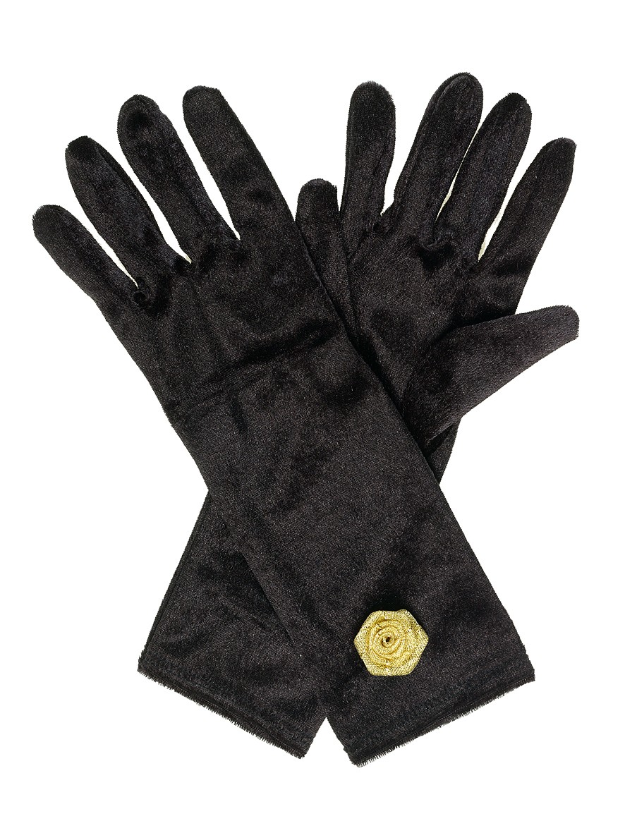 Der Handschuhabschluss ist mit einer goldenen Rose geschmückt.