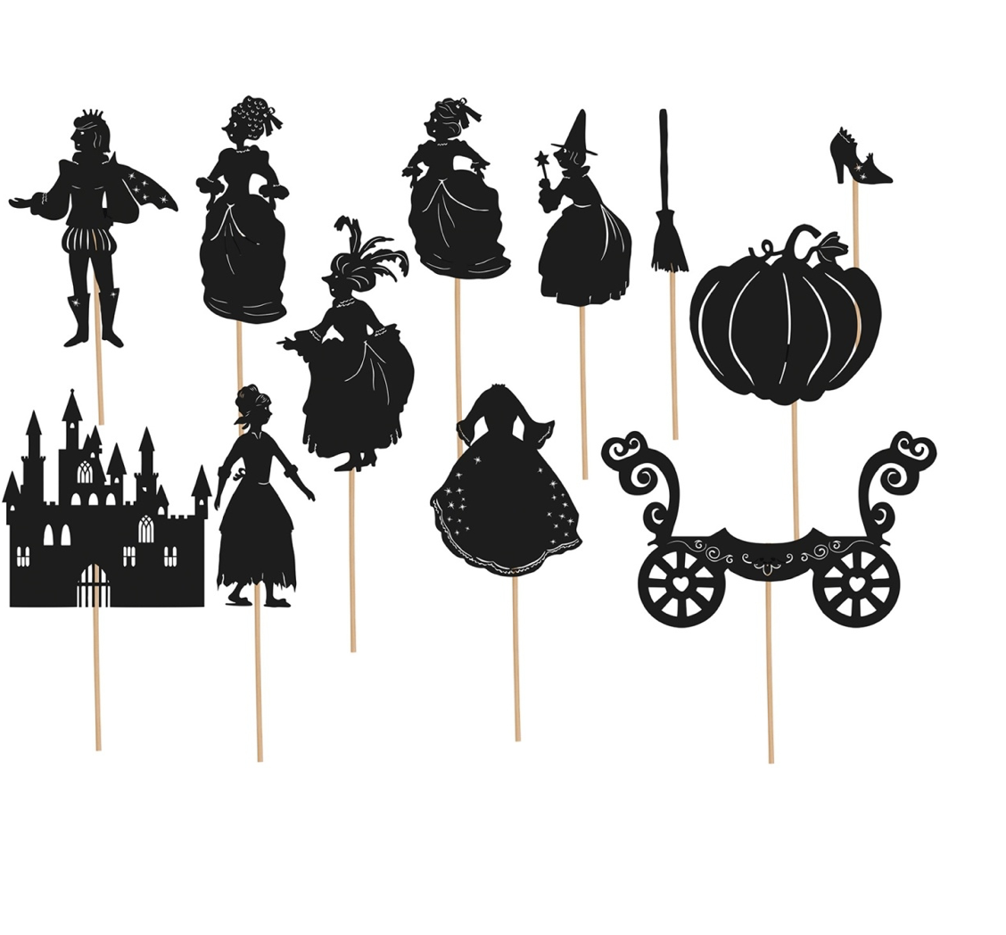 wunderhübsches kleines Theater aus Kartonage. Super edel gemacht mit Schattenfiguren für das Märchen Cinderella und einem Theater zum aufstellen und schon kann es losgehen.