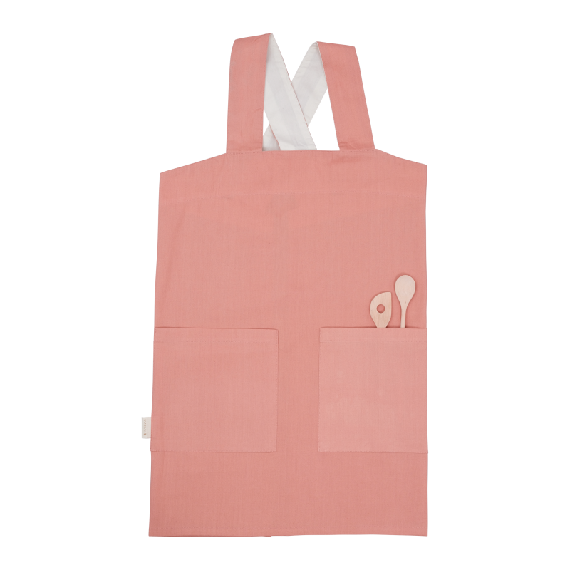 Kinder-Kochschürze oder Schürze für die Gartenarbeit rosa von FABELAB aus organischer Baumwolle in wundervoller Qualität für Kinder. Diese Kinderschürze ist zudem richtig schick und man kann damit wunderbar im Garten arbeiten und backen, ohne seine Anziehsachen komplett wäschereif zu matschen.