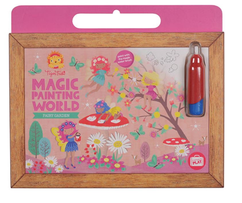 die magische Tafel Fee Tiger Tribe hat 4 unterschiedliche Motivtafel zum Thema Feen und einen magischen Stift, mit dem die Zaubertafeln wie von Zauberhand angemalt werden können. Die farblosen Tafeln werden wunderschön bunt, ohne dass die Farbe irgendwo anders landet.