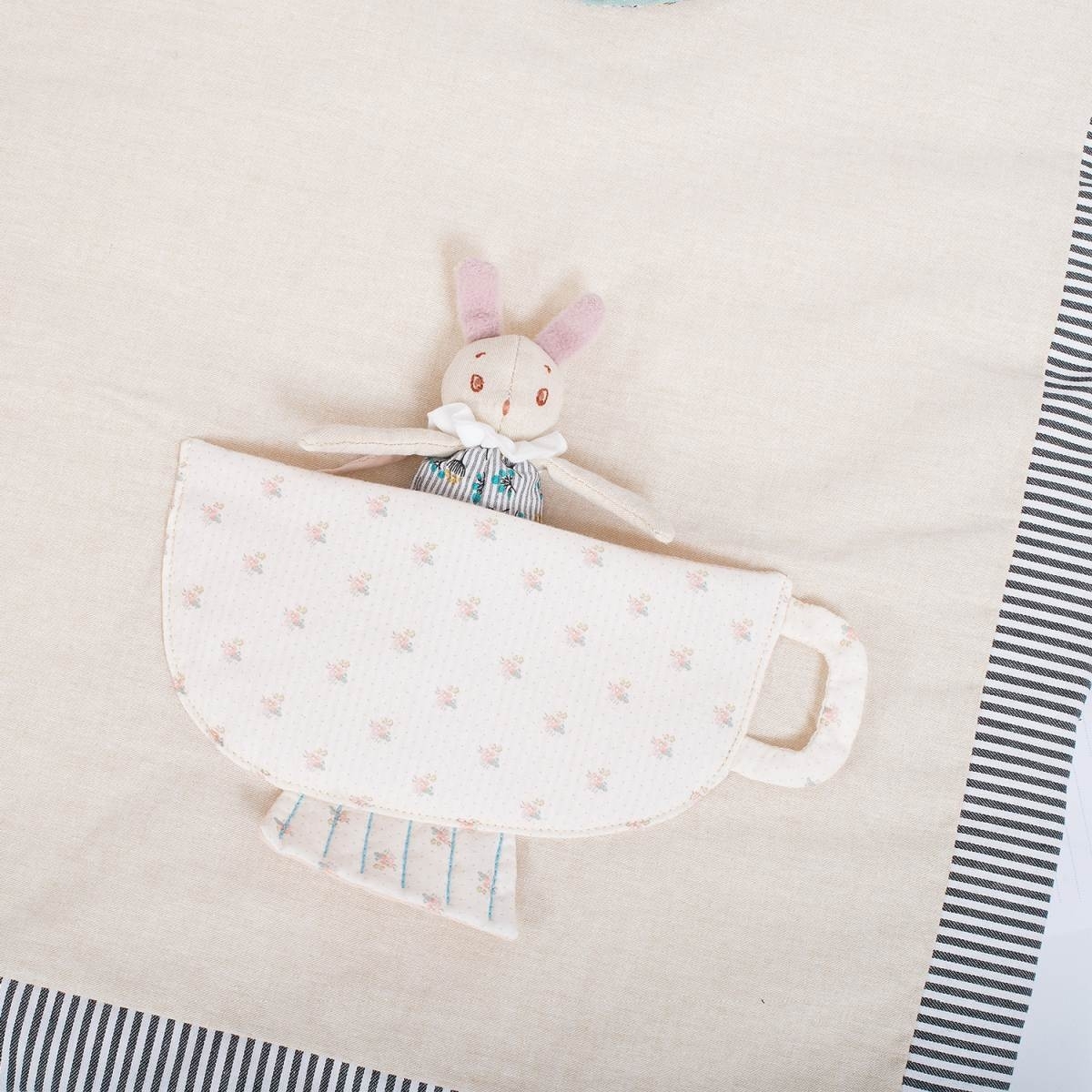 Moulin Roty Aktivitätendecke Après la pluie ist eine wunderschöne Spieldecke für Baby mit super vielen Dingen zu entdecken. Alles wunderschön handgenäht. So viel zu entdecken: Zum Knistern, zum Spiegeln, zum Verstecken.....und ein keines Häschen in der Tasse.
