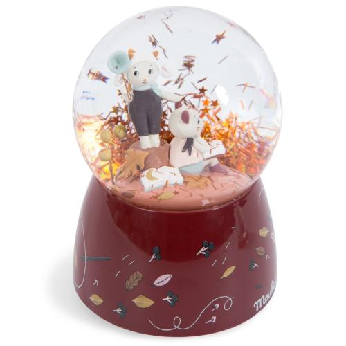 Moulin Roty Schneekugel mit Musik Après la pluie ist ein wunderschönes Accessoire für das Kinderzimmer und Schneekulgel und Musikspieluhr in einem.