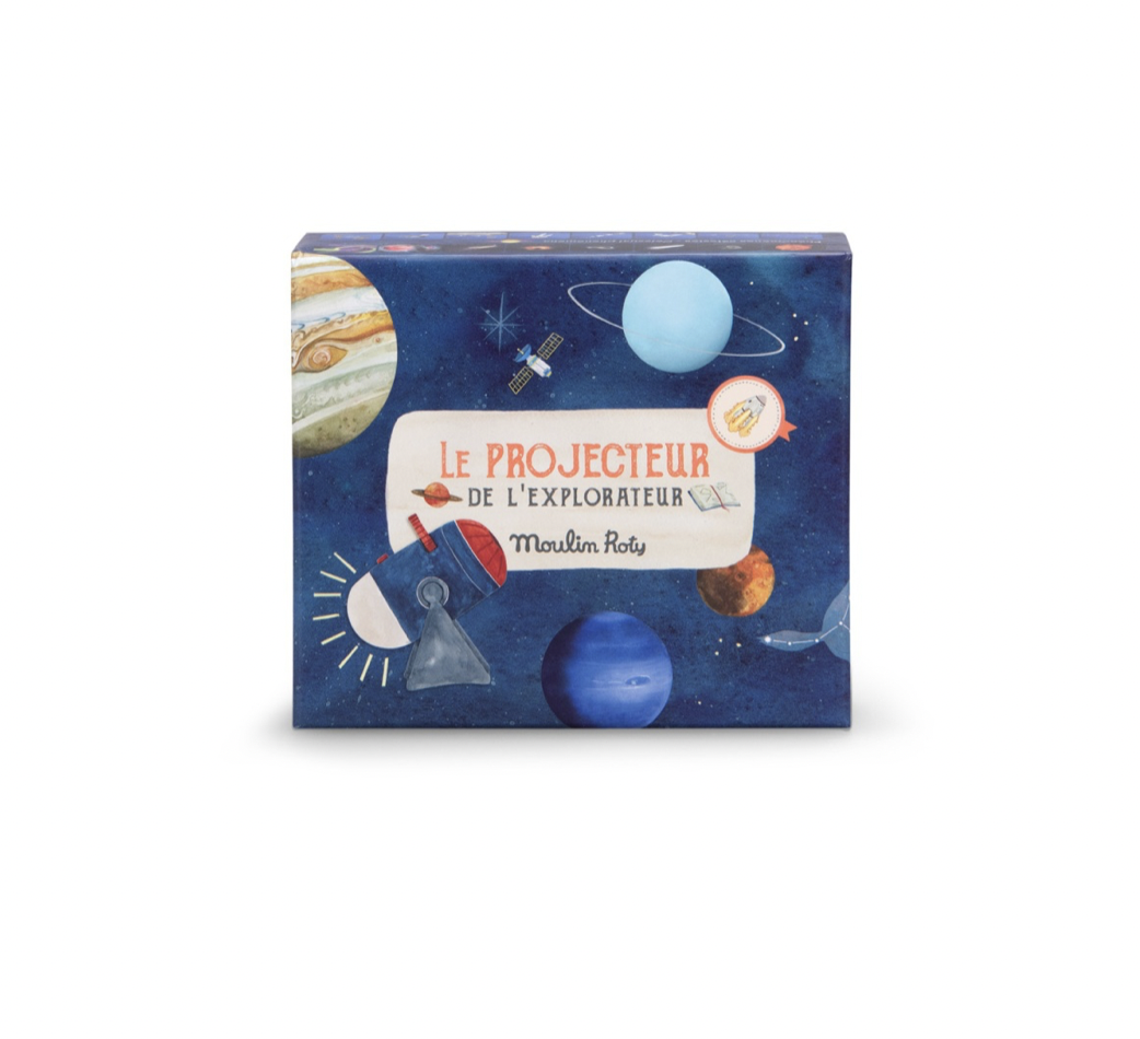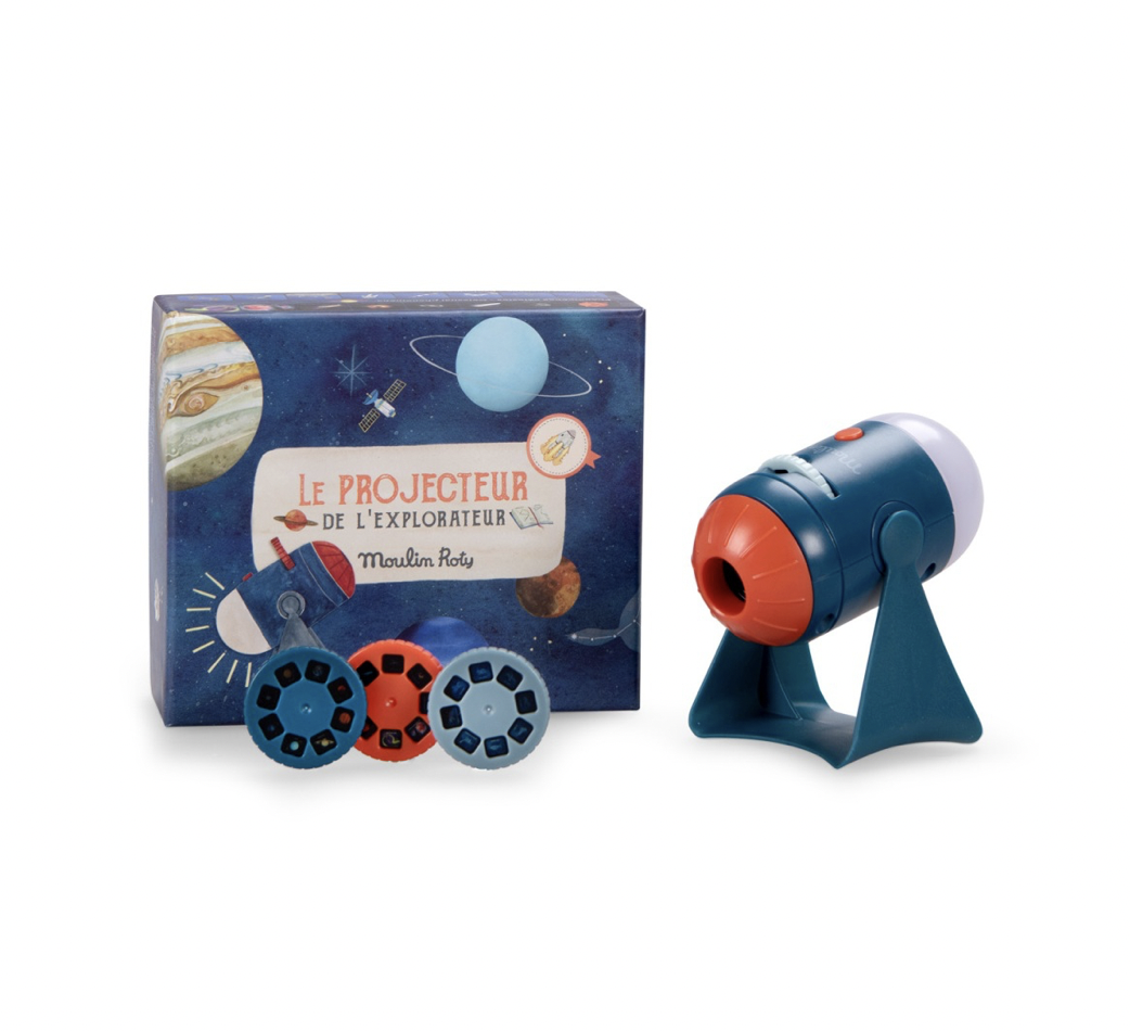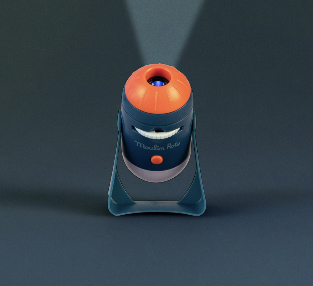 Projektor für Entdecker Moulin Roty, Astrologie. Mit dem kleinen Projektor kannst Du im Dunkeln vielleicht nicht den ganzen Sternenhimmel an deine Zimmerdecke projizieren, aber schon ein paar wunderhübsche Planeten und Sternenbilder. Macht Spaß und ist ein tolles Geschenk für Kinder ab 3 bis 6
