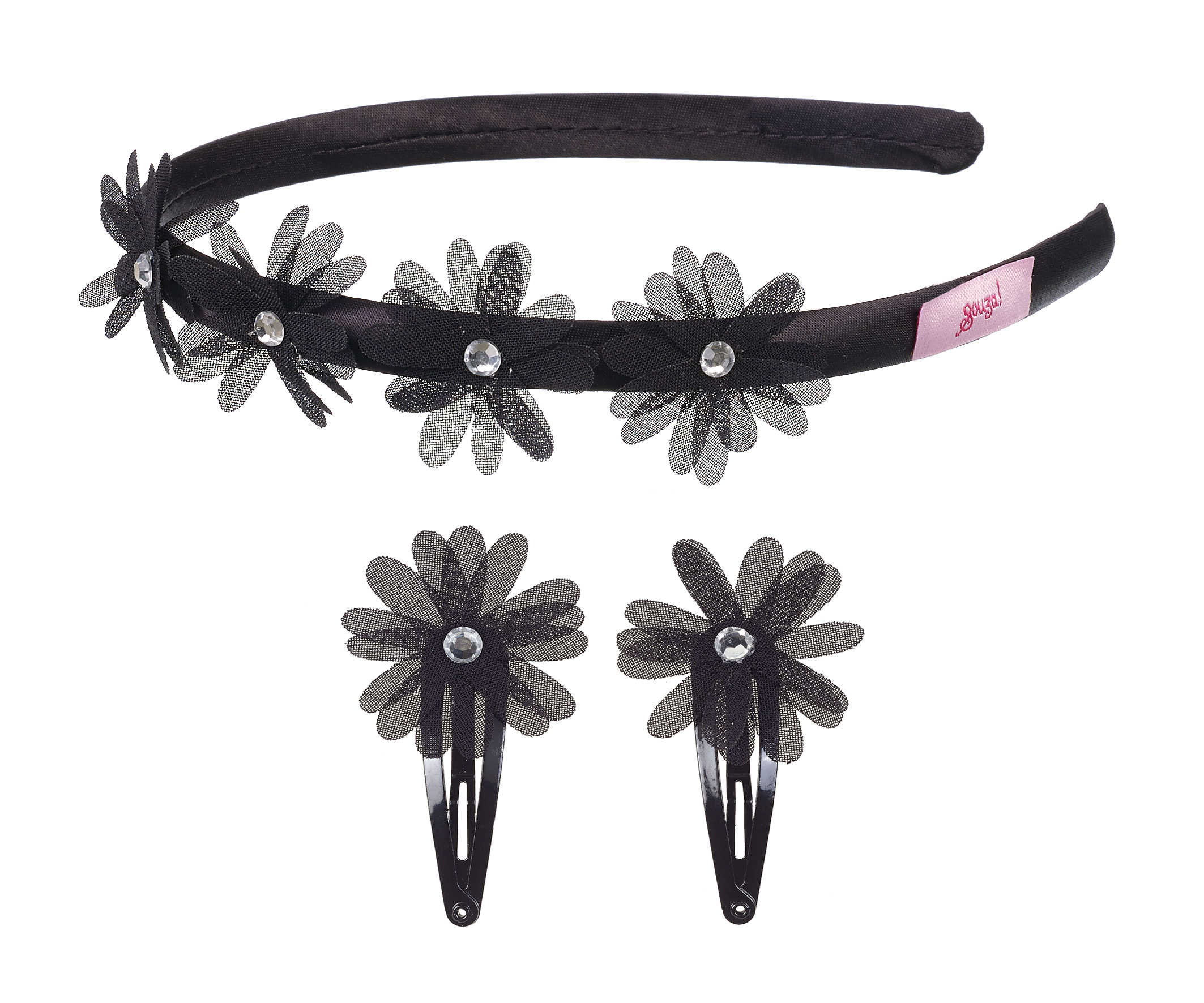 Souza for kids, dezent mit zarten schwarzen Blüten und Straßsteinen verziert.