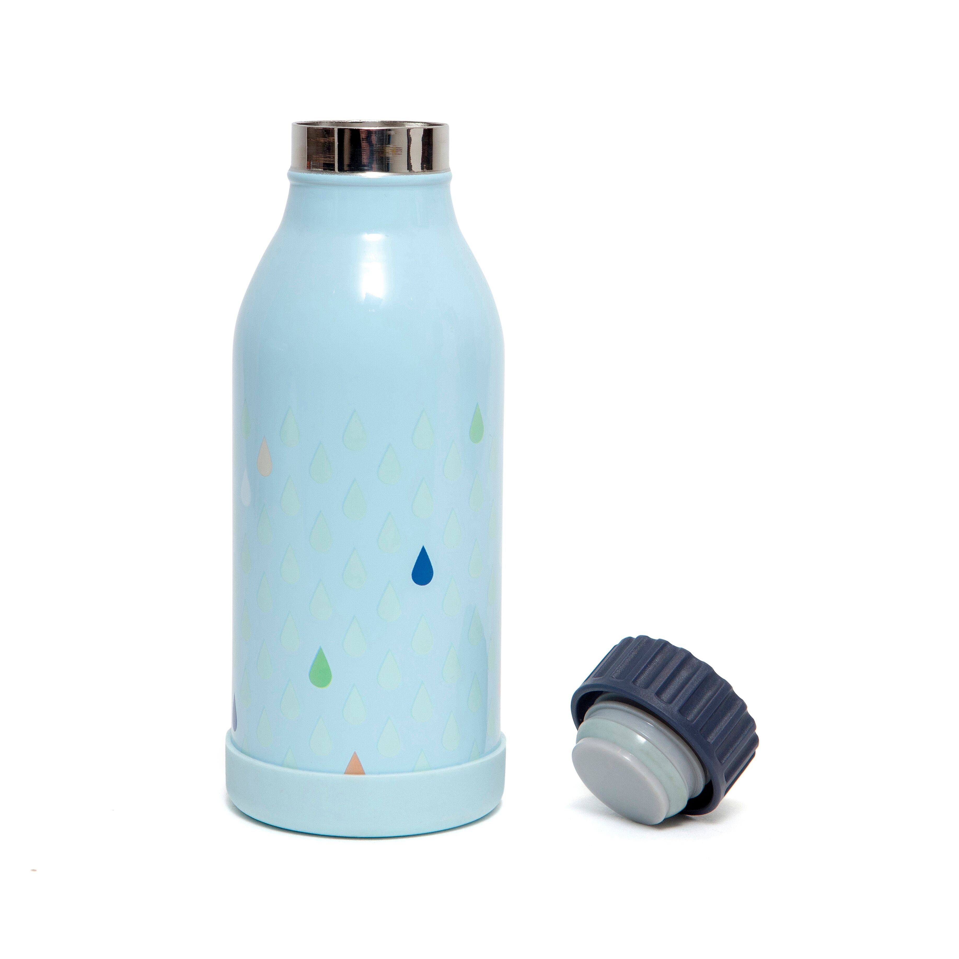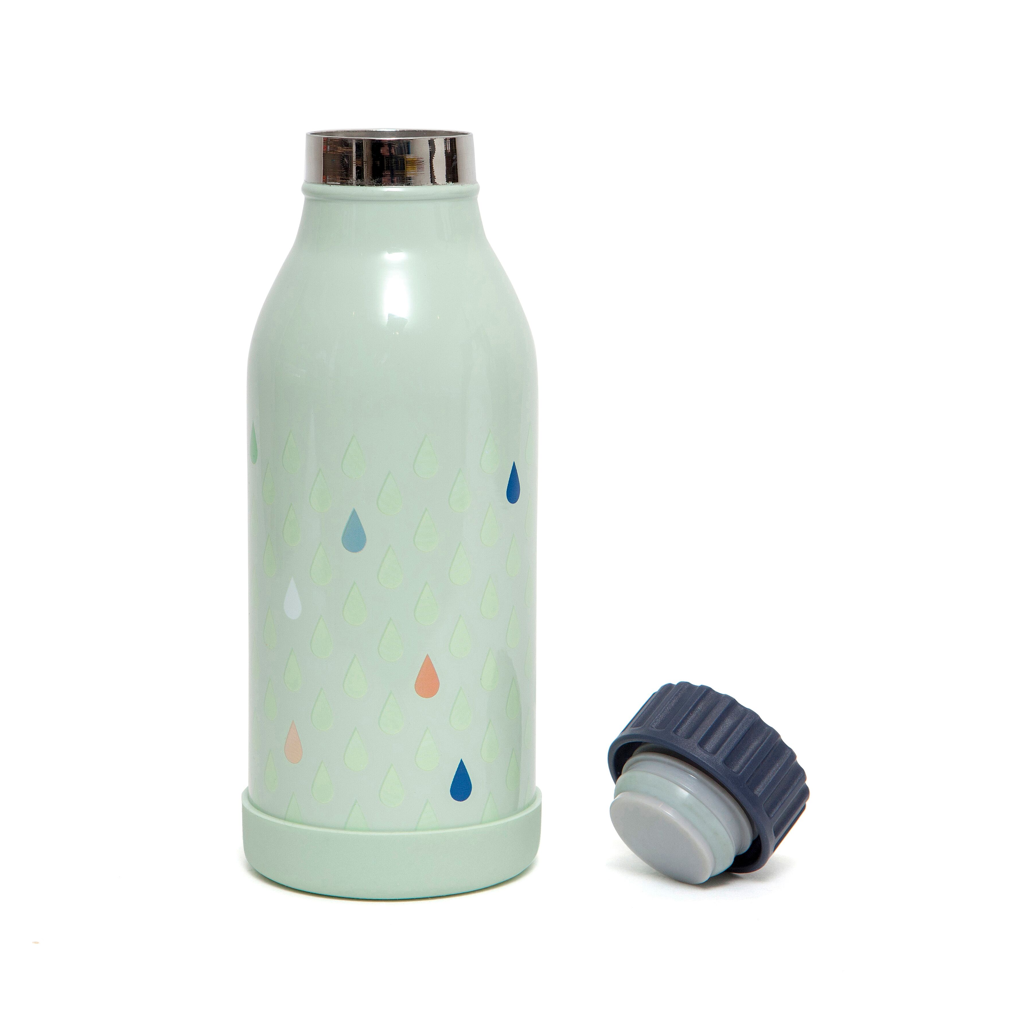 Trinkflasche Edelstahl petit monkey gibt es passend zur Bento-Brotbox im Tropfendesign in drei Farben: Hellblau, Mint Grün und Rosa Peach.
